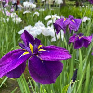 私の一番好きな色の花菖蒲が、池の周りで咲き、 豪華で紫の色がとても美しいです💜 最も日本らしい花だと思います‼️