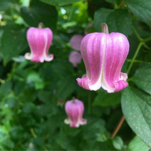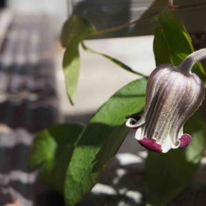 今年鉢に植え付けたクレマチスのオブスキュアが咲きだしました 欲張って3度ほど摘心したので今頃の開花に… ベル型好き・紫×緑好きな私には直球ど真ん中なお花です♪