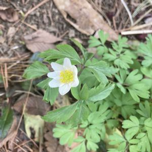外出禁止令ですが. 単独 1日 1時間内で 居住地から 1km以内での散歩が. 出来ます その他.決まりが有りますが 午前中 近くの林を 探鳥がてら の散歩. 白い花が 咲いていました 和名 ウッドアネモネはドイツ在住の Mioさんの 投稿で知りました フランス名は anémone des bois です