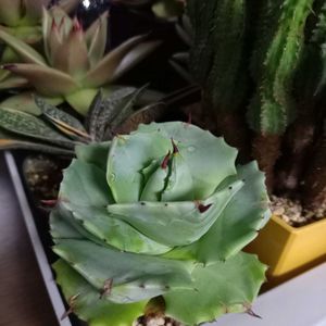 アガベ「王妃雷神」 仕事から帰ってから撮った写真なので少し暗め💧 ほったらかし管理にしては、だいぶいい感じに育ってるかな 今は出窓に置いてます