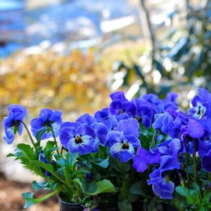 細く白い縁取りがあるビオラ この色だけだと寂しいかなと思いつつも、60円だったので4ポット買いました