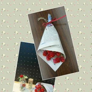 🌼今日の花🌼 千日紅 ストロベリーフィールド 毎年 こぼれ種で咲いてくれる 千日紅🌼で ミニスワッグを 作ってみました😃