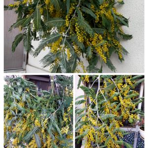 こんにちは😊 ミモザアカシア🌼 三角葉アカシアは開花が遅いので、 まだまだ咲いてます♪ カットしては吊るしたり、 お裾分けしたり🥰 薔薇と共演もあるかもですね♡