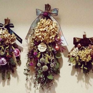 あり合わせのドライフラワーと100均オーナメントでクリスマススワッグ作ってみました🎄✨ 前に作ったスワッグ(真ん中)にもクリスマスの飾りをつけて3個並べてパチリ🤳✨(笑)