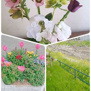 庭のお花で生け花🌸 クリスマスローズ、チューリップ、紫陽花、スイートピーー 市役所付近の景色🌸 市役所の花壇🌸 介護申請に市役所に行ったら、窓口はビニールの幕、殺菌の香りでした。デイサービスを嫌がっていた母も今は楽しみにしているのですが、今週は自粛してもらいました。介護認定要支援1なので、落ちたら行かれなくなります。 どうか今年も認定とれます様に🙏