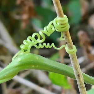 散歩道で見つけた 烏瓜の蔓 何とも力強い蔓のパフォーマンス 見ている私も思わず歯を食いしばってしまう😁 両方の蔓で枝を鷲掴み ググッっと持ち上げる〜のかなぁ〜?😅🤭 などといろいろ想像したりして…😋 爽やかなグリーンの蕾から 徐々に白い花びらが膨らみながら五つに分かれ このままでも可愛らしい花に見える 辺りが薄暗くなる頃には モヤモヤと妖艶な白い糸の様な花弁を拡げて 怪しげな姿に変わる その後の萎れた花は 茶色の破れた巾着袋の様にションボリ⤵️ 綺麗な🟢🟡🟠🔴になるまで この暑い夏の間繰り返される 烏瓜のドラマチックな生態…
