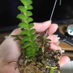 サンシャインの蘭展で購入した子 重なりあって伸びていく葉っぱがお気に入り✨ 板付用のコルクも買ったけど、鉢のままでも気持ちよさそうだからしばらくこのまま管理してみようかな。