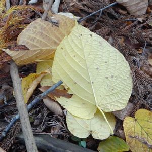シナノキ(科の木)の落ち葉 アオイ科シナノキ属 落葉高木 日本固有種 登山道脇の山の至る所に絨毯のように落ちていました。 11月2日 場所:浜松市天竜区 常光寺山