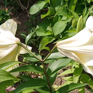あっち向いて ホイ いくら今日も暑っちいからって それはないでしょう‼️ 今日のお花「カサブランカ」 綺麗なお姿が 見えませんよ>.<;