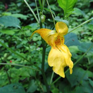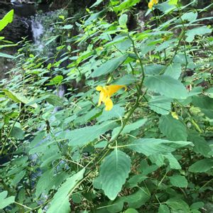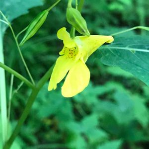 キツリフネ🌼週末訪れた岩手県の猊鼻渓にて。 ちょうどこうした季節の変わり目に咲くお花なんですね。