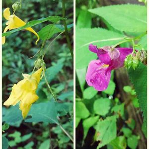 ツリフネソウ科の キツリフネ(*˙O˙*)と ツリフネソウ(*˙O˙*)✿:* 黄花も紅紫花もそろそろ 種子に٩(*˙O˙*)و 一年草なのでこぼれ種子で また来年花を咲かせるんだね♡ 小さな事にも 時の流れを感じる秋🍃