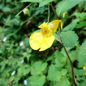 キツリフネ(黄釣船)🌼 釣船草は、紫色が多いようですが、黄花が咲いていました(^_^)