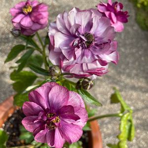 ラナンキュラス ラックス ティーバꕤ୭* 真ん中の一番花は開花後10日で貫禄十分💜✨ 咲き始めは初々しいピンク💗 つぼみはローズ色🌹💕 結果、合わせていつも可愛いです🤭