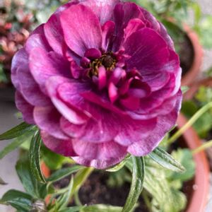 2年目のラナンキュラスラックス ティーバ。 花がたいぶ開いて色も紫になってきました。