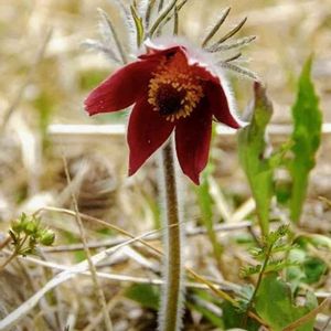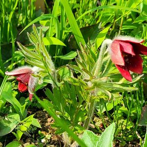 おはようございます🙋♀️ オキナグサ🥀 翁草 キンポウゲ科 多年草 絶滅危惧種 花ぶら散歩🚶♀️ 珍しい🥀に出会いました✨💮😃下向きに咲く花 花びらの様に見えるのは萼片ですね😃 名前の由来は お花が終わると全体が白い毛で覆われ翁の様になる事からでした😊 スルーして見てねぇ