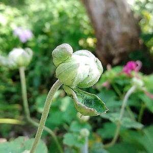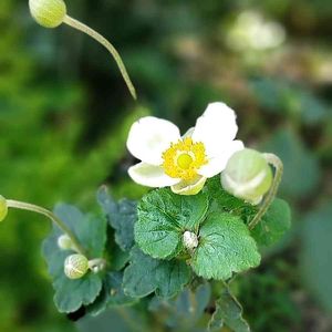 秋明菊 白花 やっと咲きました 昨年小さな苗でお迎えした秋明菊です 白は清楚でかわいい~蕾もいいね♡