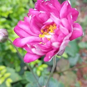 秋明菊プリンツハイリッセ 八重咲きのピンクのお花🌸かわいい 昨年苗でお迎えして、やっと咲きました٩(๑❛ᴗ❛๑)۶