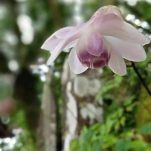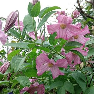 クレマチス ヘザーバーシェル2番花が咲きました うつむき加減でとてもかわいいです💓💕 下から撮影しました