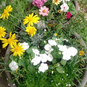 先日、母の日に届いた、沢山のお花の苗を寄せ植えにしました! 寄せ植えは、難しいですね!