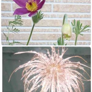 オキナグサ 上は、お花 下は開花後の種子です! 花は、4月末に咲き終わりました! 名前の由来は、開花後に出来る種子に長い白い毛があり翁のひげの様に見えることから翁草と呼ばれているそうです。