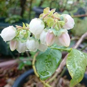 雨の朝 ブルーベリーの花に雨の滴が。。。 とてもキレイでした‼