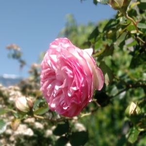 つるバラ ピエールドゥロンサール青空の下綺麗に咲いています(^^)