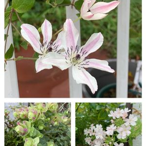 クレマチス ペトリエイ 2年目なのですが 成長ほとんどしてないので 心配😟していました💦 無事咲いてくれてホッとしました🌼 2枚目 同じく2年目の チェリーカクテル 立派な蕾がつきました😆 もうすぐ会えそうですね 3枚目 今年お迎えした 双雲 八重咲きの🟣のお花が 咲く予定です♪ 楽しみです😊
