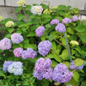 皆さんの投稿でたくさん咲いて きてるんだなぁ~って 思いながら見ていますが うちはまだこんな感じです 大好きな紫陽花がどんどん 咲いてくるのを想像するだけで 楽しくなります 大好きなものって想像する だけでも笑顔になれますね…… これは雨に唄えばという 品種だと思います❀