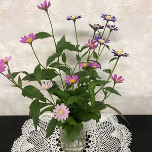 おはようございます😊🌥️🎶 今日のお花「みやこわすれ」 雨に打たれ倒れたりしたので 切り花にし家の中に入れました