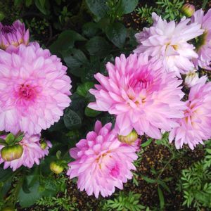 ダリヤ✨ よく見ると右のダリヤにはミツバチさんが…