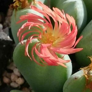 昨日、用事があり普段滅多に行かない(遠いので)大分市へ🚃 もちろん「ついでの」多肉屋さんを事前チェック✨ いざ行ってみると用事先の近くにすごく豊富な多肉屋さんが!! 大分市の「Quatro」さん☘️ ずらーっと、ずらーっと、多肉が並んでて、夢のようでした😍 時折オーナーさんに質問しつつ、1時間はうろうろ🚶♂️見たことないのもいっぱいで楽しかったー🎵 お迎えその① やっと出会えたコノフィツム「花車」 お花が咲いているのもあって可愛かったけど、「咲かせてみせよう!」と初心者のくせに強気に出てみました😅