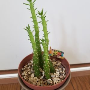 ほぼ1年後の姿シリーズ㊲ ※最近比較した子達は除外 姫将軍 舌を噛み切りそうなアウストロキリンドロプンチア属所属。 我が家の子はダイソー産。 右:去年10月 左:最近 背が伸びたね。頭から白い糸を出している。 カットして分頭させたり、増やしたりする育成をしている人がいるみたい。 生命力があるね。私は自然に任せるので手を加えないでこのまま見守る。 壁|ω•`๑) 。oO(もう少し太くならないかなぁ。子株を外せば太くなるかな?) ........................ 。 自然に任せるっていう意味とは?( ˊᵕˋ ;)