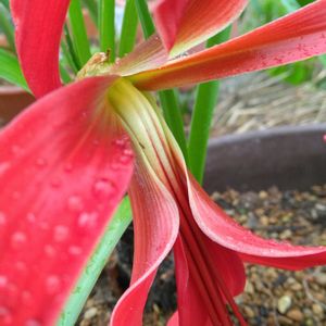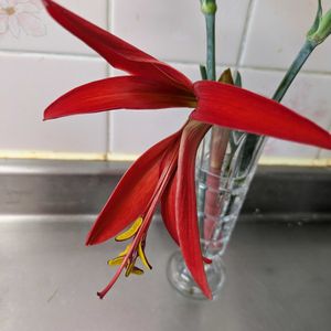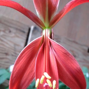 🏷️真っ赤な火曜日 に合わせて 「ツバメズイセン(燕水仙)」✨❤️🐧 今年も咲いていました📸 ① 真正面上から ② 斜め上から シュッとしてカッコイイ姿です🎶💕 翼を広げて飛んでいるように見えます🕊️👀 シベが足、ということですね⁉️😉 ヒガンバナ科 スプレケリア属 別名:「スプレケリア」 花言葉:「幸せを知らせる」「素朴な人」 「賛美される花」