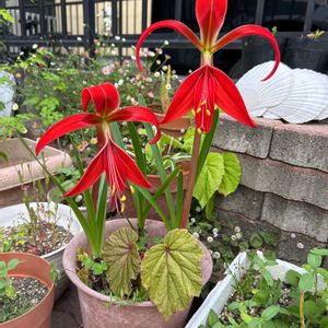 ヒッペアスケリア 栽培3年目で初開花です!ヒッペアスケリアはアマリリス(ヒッペアストラム)×ツバメ水仙(スプレケリア)の雑種になります! 花が両親の中間くらいの形になっており、なかなか面白いです! スプレケリアは花芽1つにつき、花が1つなのに対してヒッペアスケリアは2つなのも良い点ですね! ※4枚目 ツバメ水仙(スプレケリア)