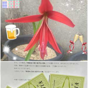 本日2投目 🙇 本降りの雨の一日でしたが、先程友人から咲いた! と送られてきたpicと共に郵便が届き、なんと「お食事券🎫当選🎯」 応募した事を忘れると当たるという 我が家のジンクスが有るのですが… 最近、上手くいかない私事があり 落ち込んでいたのですが、爆上がりです🙌 喜びを分かち合って頂けますか😆