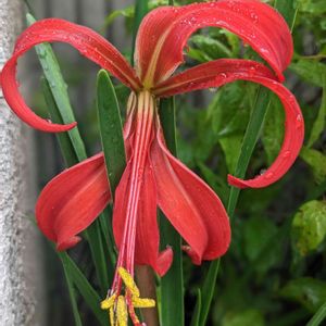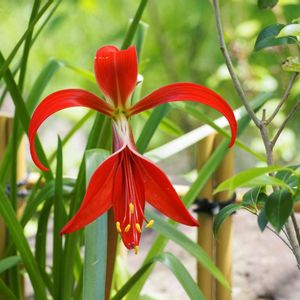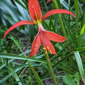 スプレケリア 別名:ツバメスイセン 個性的な花が特徴的なスプレケリアが開花しました!ツバメスイセンとも呼ばれていますが、アマリリスと近縁な植物ですね!交配することも可能でその雑種はヒッペアスケリアの名前で流通していたりします👍