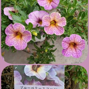 あぁーだめかなぁーと放置して✂️もしないでいた、カリブラコア、ブルーベリースコーンはあちこち手を広げて花を付けてくれました~🎶 お利口さん🍀
