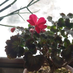 2月に咲いたゼラニウムの黒雲竜🐲また咲いてくれました❤️だいぶ緑色の葉になってきました🌿