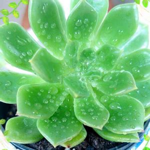 ♡おはようございます🙋☔🌱 ♡今日から4連休。。神奈川は朝から雨🌧️がパラパラ…🐸🌿 ♡ベランダの多肉ちゃんたち✨🌵✨雨に濡れてキレイです✩⃛ೄ ♡エケベリア属スリーピー✧*。。。って札には書いてあるけど…PCで見た画像となんか違うなぁ。。🤔ウ-ン ♡綺麗なグリーンでとっても可愛いから。。まぁいっかぁ(ˊ˘ˋ*)♡