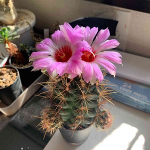 本日3枚目です♪ こちらのサボさん今年は4回咲いた〜 良く咲くサボなんですね(*´∀`*) 冬の間、家の出窓にサボを並べていたんですけど、ある日の町内会の会合で… サボテンの家の人だよね?と町内会のご婦人に言われて我が家は『サボテンの家の人』なのだと知る事になりました。(◍´ꇴ`◍) 皆さん窓辺の植物を見ているんですね〜 その年の冬からは、そこに並べるのを止めたのですが…(´ω`٥) サボテンは大好きです♪ でも『バラの家の人』とも言われてみたい…🌹 2021/10/8