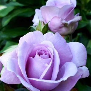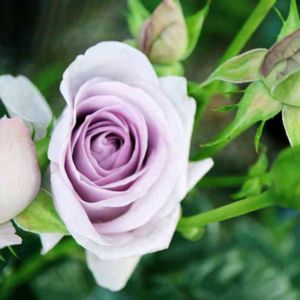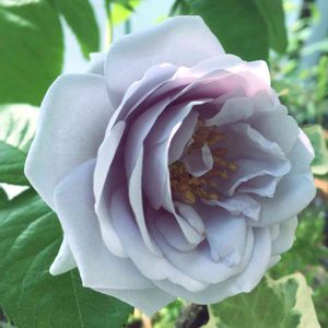 おはようございます☘️ オシャレな色の薔薇が咲きました。中輪咲きのブルーバューです💜・:*: 中輪種では珍しい紫系の花だそうです?😊🔖 初めての開花でうきうきです:♡*:・゚