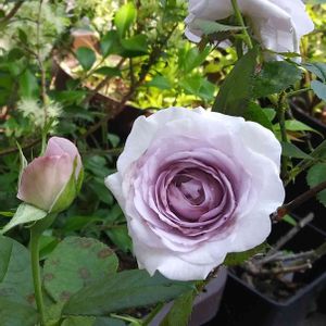 バラ園で一目惚れしてお迎えしました。。 薔薇は気軽に増やさないようにしていたんですが、直売所にあるのを見た瞬間、そんな事吹っ飛んでしまいました。 ラベンダー色がシルバーがかって、とても素敵です。