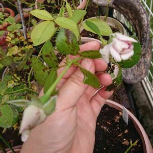 今年の ブルーバユー🌹 休眠期に土を新しいものに入れ替えたけれど つぼみは小さめ… 開くとやっぱり小さめでした。 去年 病害虫で弱りながらも きれいに咲いてくれたけれど 今年も このコなりに精一杯…かな… 好きな色❤︎