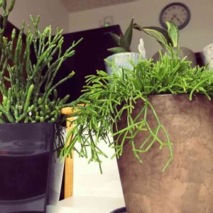 新しい子( 灬˙▿˙灬 ) リプサリス バッシフィラ♡ 園芸店の隅でしわしわに なりながらも新芽をだして 頑張っていたからお買い上げ‼︎ 買ったばかりの鉢に植え替えてみたよ♩(pq*´꒳`*)♡*。