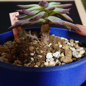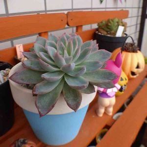 真ん中が伸びて来たバイオレットクィーン 下葉を少しモギモギして、葉挿しにしましたが、成功してません… ベランダ冬用100均多肉棚が出来てからは晴れた日は毎朝出して仕事に行きます。 そしたら、なんということでしょう🎵ピンクの縁取りが🍀😌🍀 直射日光の大切さをまたも思い知らされたのである💡
