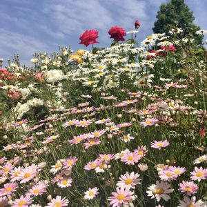おはようございます✨5月がスタートしましたね😊 たくさんのマーガレット‧˚₊*̥(* ⁰̷̴͈꒨⁰̷̴͈)‧˚₊*̥の頂上で赤薔薇二輪が仲良く💕 GSさんをやり始めた頃に触発されて観に行ったバラ園pic、 過去に投稿していなかったフォトです☺️ こんな時ですが、皆さまもどうぞ良い一ヶ月を お過ごしくださいネ✨ 2018.5.6 横浜市『未来のバラ園』