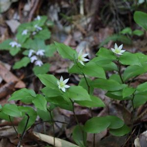 ツマトリソウ 山地の樹の下に生え、葉は広く茎の上部に4〜5枚付け、茎の上に白い小さな花をひとつ咲かせます。 花びらは7枚です。 褄取とは和服の褄を手でつまんで持ち上げる事で、その時に着物の赤い裏地が見える様に、花の縁取りが見られら事から名付けられたそうです。