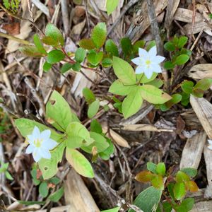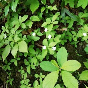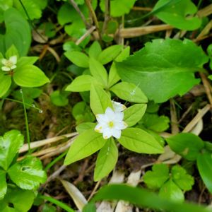 ツマトリソウ(褄取草) サクラソウ科 花期6〜7月 花冠は7弁に分かれて咲き、雄しべは7個、雌しべは1個 今まで離弁花だと思い込んでいましたが合弁花であること初めて知りました🔍 花冠の先端が淡い赤で縁取られることからツマトリソウと名付けられたとか… (※端=ツマ。物のはしの部分。へり。) ただ、過去に別の場所で見たのも、そして今回見たのも、白一色のツマトリソウが殆どでしたよ(-_-) ピンク色に縁取られたもの、やっと見つけました(´∀`)
