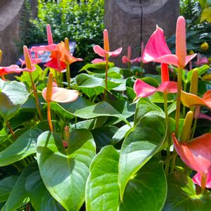 今日のお花『アンスリウム』 5月のシンガポールの温室内 今回は上からではなく 真っ直ぐに立った花を写してみました。 何とこのシベの様な棒の部分が花だそうで( °꒫° ) 赤く見える部分は葉が色付いた『仏炎苞』 花の部分はやっぱり太ったシベにしか見えない💦