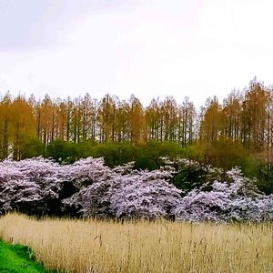 以前の写真です 水元公園の朝の散策路です。 葦の小道から見える、メタセコイアの森と桜並木🌸🌸🌸手前は葦です。